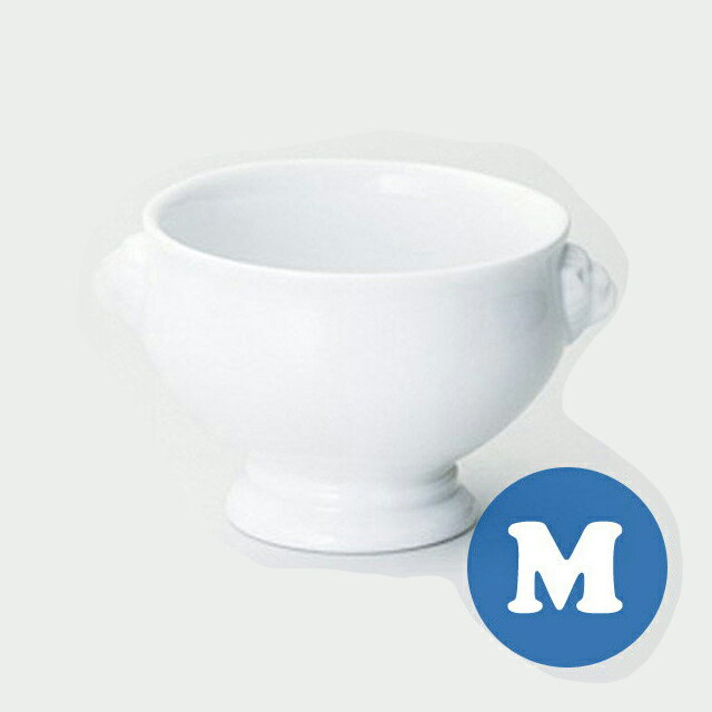 白ライオン 370ccトリュフ 中 スープセット (蓋&受皿付) 日本製 側面の獅子頭モチーフがゴージャスな印象