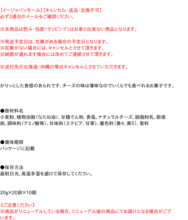 [関連キーワード:お菓子 おやつ スナック アラレ チーズ味 おつまみ 小袋 まとめ買い 駄菓子 大人買い]【イージャパンショッピングモール】内のみのお買い物は、送料一律でどれだけ買っても同梱する事が出来ます。