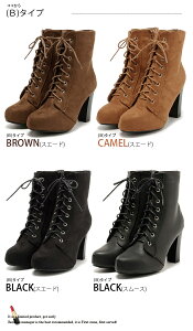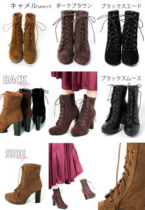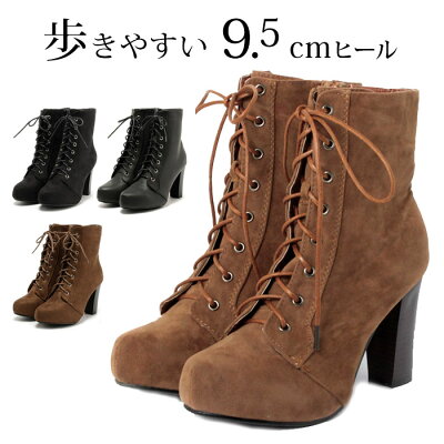 ショートブーツ レースアップブーツ のオススメPOINT ■超足長のキレイなスタイルに! 9.5cmのハイヒールで身長が約10センチアップ! 太めのチャンキーヒールだから高いヒールなのに安定感は抜群です。