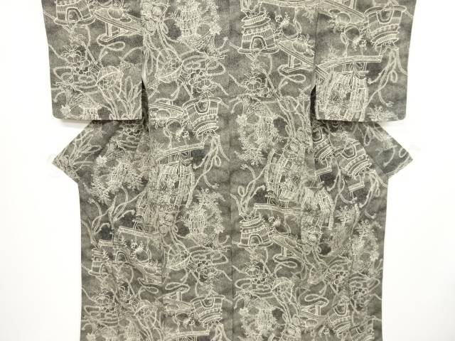 かまどに竹の子・瓢箪模様小紋着物【リサイクル】【中古】