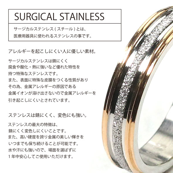 サイズ…9号〜17号 素材…サージカルステンレス (サージカルスティール) リング幅…約4mm カラー…シルバー・ピンクゴールド ブラック 注意事項…こちらのアイテムは1つでの販売となります ペアでお買い求めの際は2つご購入が必要となります