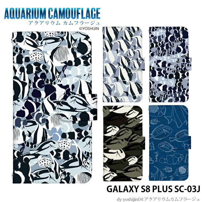 GALAXY S8 PLUS SC-03J ケース 手帳型 ギャラクシー docomo ドコモ カバー デザイン アクアリウム 迷彩 熱帯魚 yoshijin 海 夏