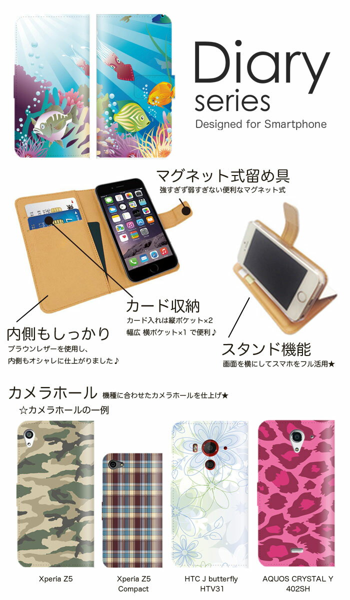 Xperia XZ1 手帳 ケース SOV36 手帳型ケース エクスペリアXZ1 手帳型カバー オススメ スマホケース レザー au 海 ヤシの木 バカンス 南国 ハワイアンデザイン サーファー 熱帯魚 鑑賞 エンゼル 水草 石 流木 星形 スター 化石 (V)